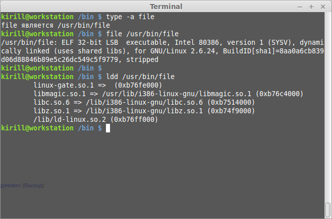 Теперь, раз мы уже так много знаем и умеем, давайте разберемся в самих файлах и программах чуть глубже- спросим у утилиты file про нее же саму и посмотрим, что она нам скажет?