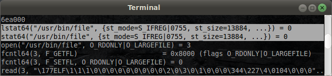 Итак, посмотрим за поведением утилиты file во время ее работы, для этого используем упомянутые выше утилиты strace и ltrace и построим трассы вызовов.