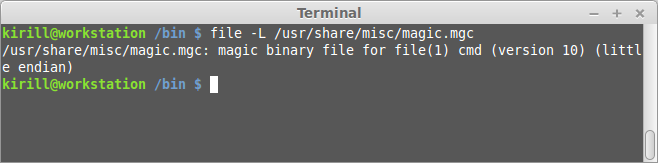 - libmagic.so.1 — ее собственная библиотека, содержащая сигнатуры для определения типов исследуемых файлов.