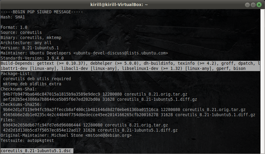 Итак, мы скачали этот пакет программного обеспечения ( убедимся в этом командой ls), после чего, уже известной нам утилитой file узнаем, что же это мы такое скачали: